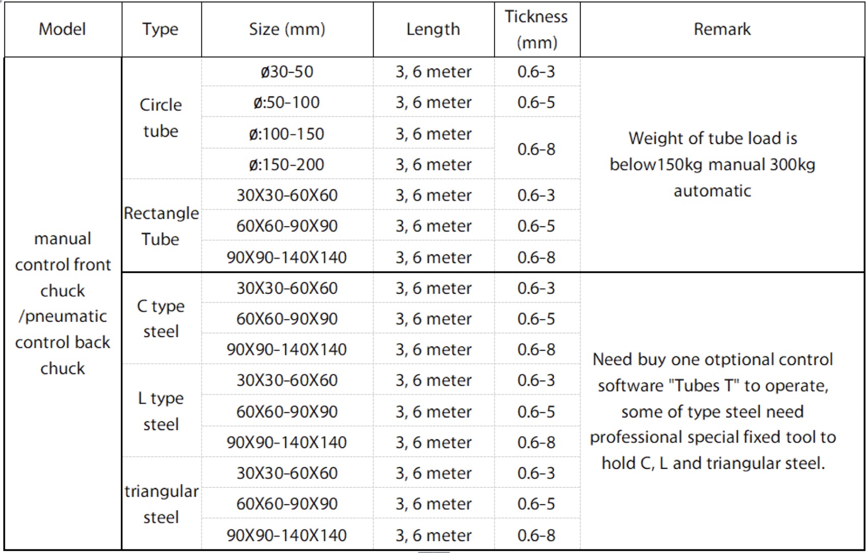 | 最高管 长度 | 3000毫米/ 6000毫米 | ||||